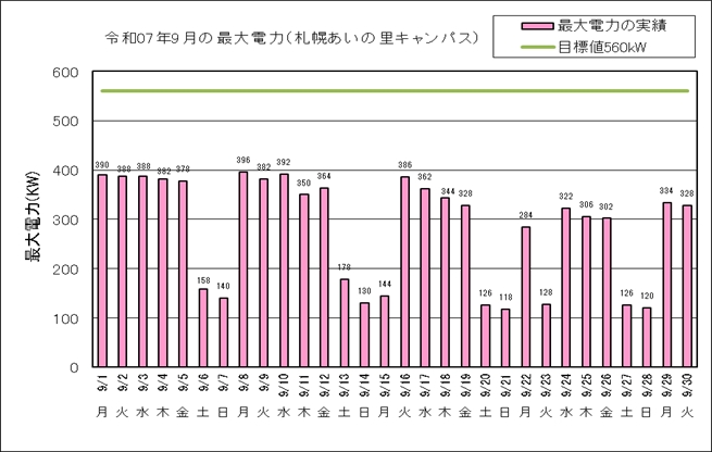札幌あいの里キャンパスの夏季最大電力(KW)