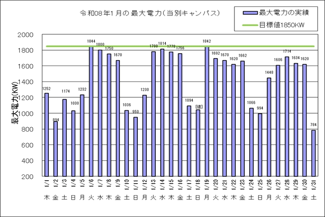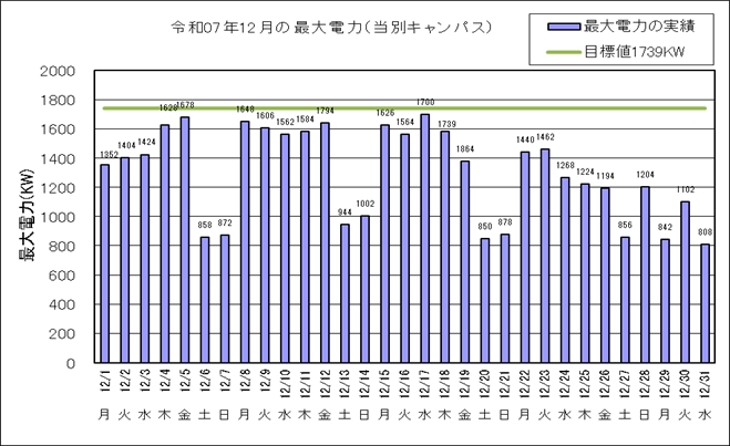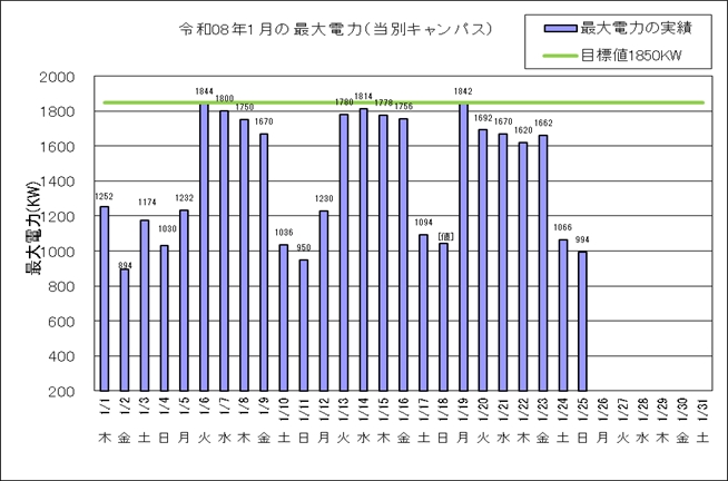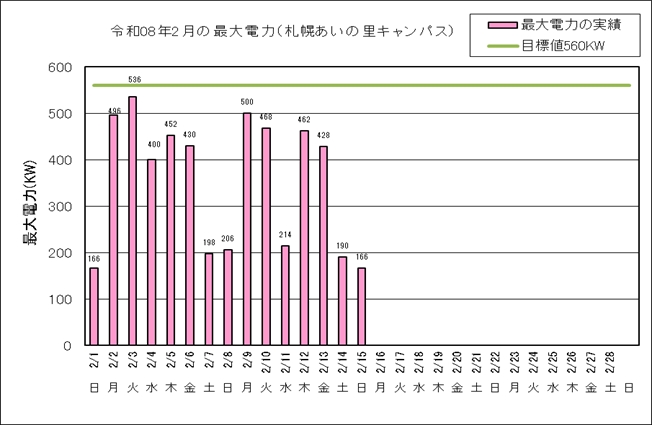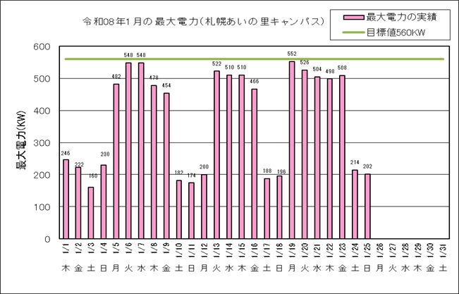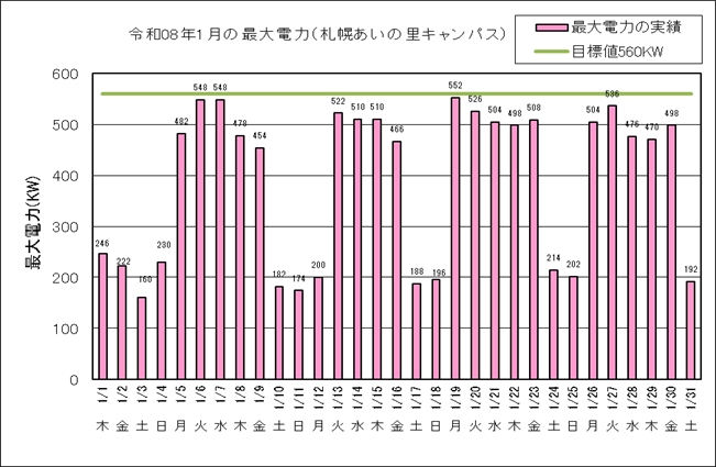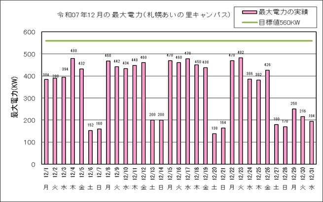 札幌あいの里キャンパスの夏季最大電力(KW)