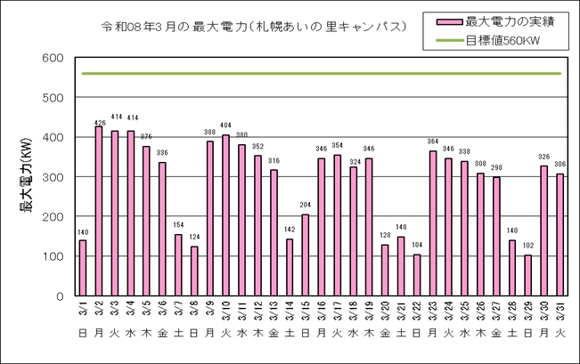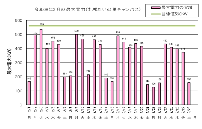 当別キャンパスの冬季最大電力(KW)