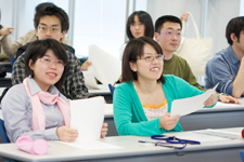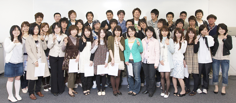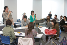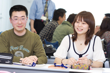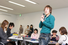 「では、実際にコミュニケーションしてみましょう」という阿部先生の声でアイスブレーキングが始まりました。「アイスブレーキング」とは、氷を溶かす、割るという言葉通り、緊張をほぐして参加者同士が打ち解け合うためのものです。今回のアイスブレーキングのツールは“あだ名”。グループごとに全員のあだ名を集め、そのなかから一人だけを選びます。そして選ばれたあだ名の持ち主以外の学生が、そのあだ名と理由を会場の全員に発表するというものです。簡単なことですが、メンバー同士は初対面でまだお互いの名前すら覚えていない状態ですし、与えられた時間はおよそ10分。どのあだ名を選ぶか、誰が発表するか、面白いストーリーをどう作るか、どんどん決めなければなりません。「えーっ、ジャッカル?似合わな〜い」「教授?わかる、わかる」…。あちらこちらで笑い声も上がり始め、教室はがぜんにぎやかに。氷はすっかり溶けました。
