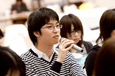 - 「動きのある発表で、小学生を引きつける工夫がいっぱいでした。各グループとも人数が多かったのですが、コミュニケーションがよくとれていて、忙しい人、ひまな人というのがなくグループワークを進めていたことに感心しました」