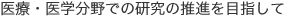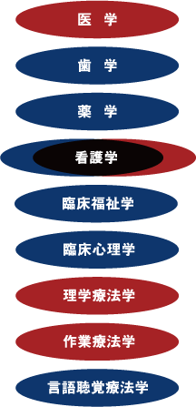 医学・歯学・薬学の複合的な連携を推進する一方、医療を取り巻く基礎研究と、臨床分野との連携を重視した共同研究を行っていきます。また、看護、臨床福祉、臨床心理、理学療法、作業療法、言語聴覚療法の各分野でも相互連携を試み、これからの医療ニーズに即した実践的研究に取り組んでいきます。