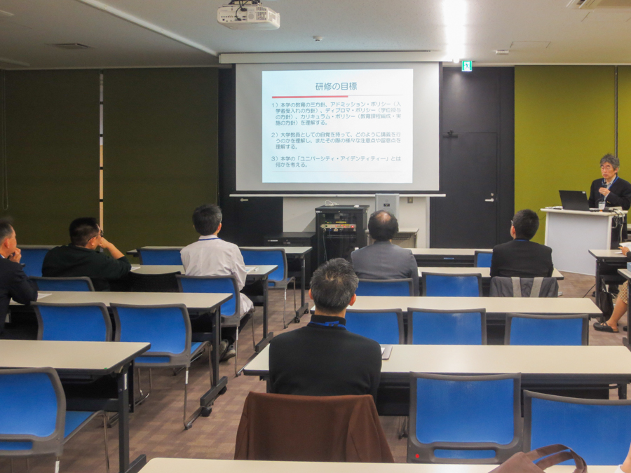 研修は、全学FD委員会の荒川委員長の開会挨拶の後、三国学長より「北海道医療大学の教員としての使命と期待」と題した講話、本家委員による「本学の理念・目標・方針に基づく授業~基本的な確認事項について~」の演題でのレクチャーがありました。