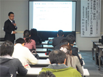 11月8日(金)18:30から北海道医療大学薬剤師支援センターの薬剤師研修講座として「将来ビジョン講座:これからの薬剤師が目指すもの」の第3回を札幌サテライトキャンパスで開催しました。今回は、国立精神・神経医療研究センター精神保健研究所薬物依存研究部心理社会研究室長 嶋根卓也先生が「医薬品乱用・依存のゲートキーパーとしての薬剤師」をテーマにご講演されました。まず始めに、脱法ドラッグが登場してから薬物乱用が静かに拡大し、使っても罪にならない薬物(向精神薬など)が主役になってきている現状をお話しされました。次いで、参加者に「向精神薬依存患者の乱用動機は?」、「なぜ過量服用?」など具体的な事項を質問しながら対話方式で時には解説を交えながら講演を進められました。その中で、薬剤師は地域住民の健康状態に関する情報に接する機会が多い職業であり、薬物依存や過量服用に対するゲートキーパーとしての役割が期待されていることや、そうした患者との接し方を「気づき」「関わり」「つなぎ」の基本要素にあてはめながら考えていく手法などについて分かり易く説明されました。