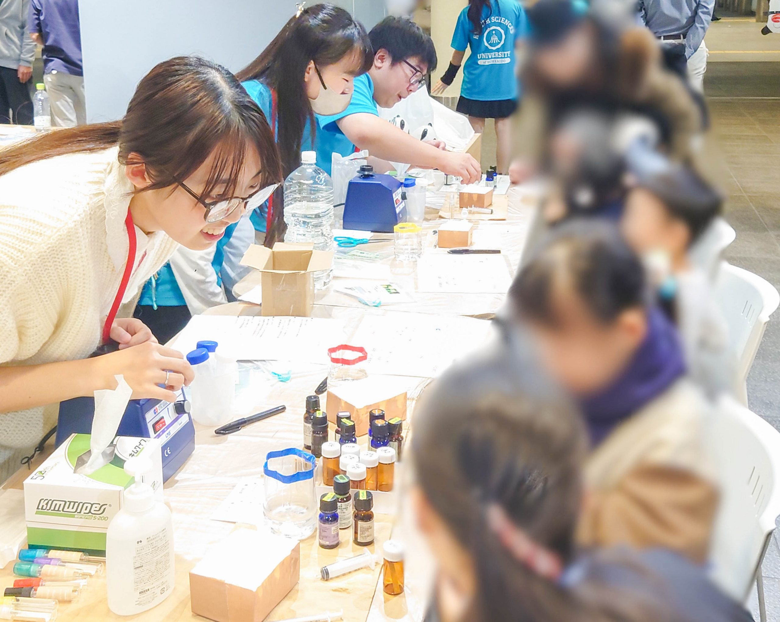2025年10月19日(日)に札幌駅前地下歩行空間にて開催された札幌薬剤師会主催の「くすりと健康のクイズ&パネル展」にSCP(学生キャンパス副学長)を中心に薬学部所属学生6名、教員1名が参加し、市民の方に向けた薬物乱用防止の啓発活動を行いました。 医療大ブースではアロマオイルを用いたオリジナルスプレーの調剤体験を通じて参加者の皆さんに身近な薬物との関わり方についてや薬剤師としての役割を説明しました。