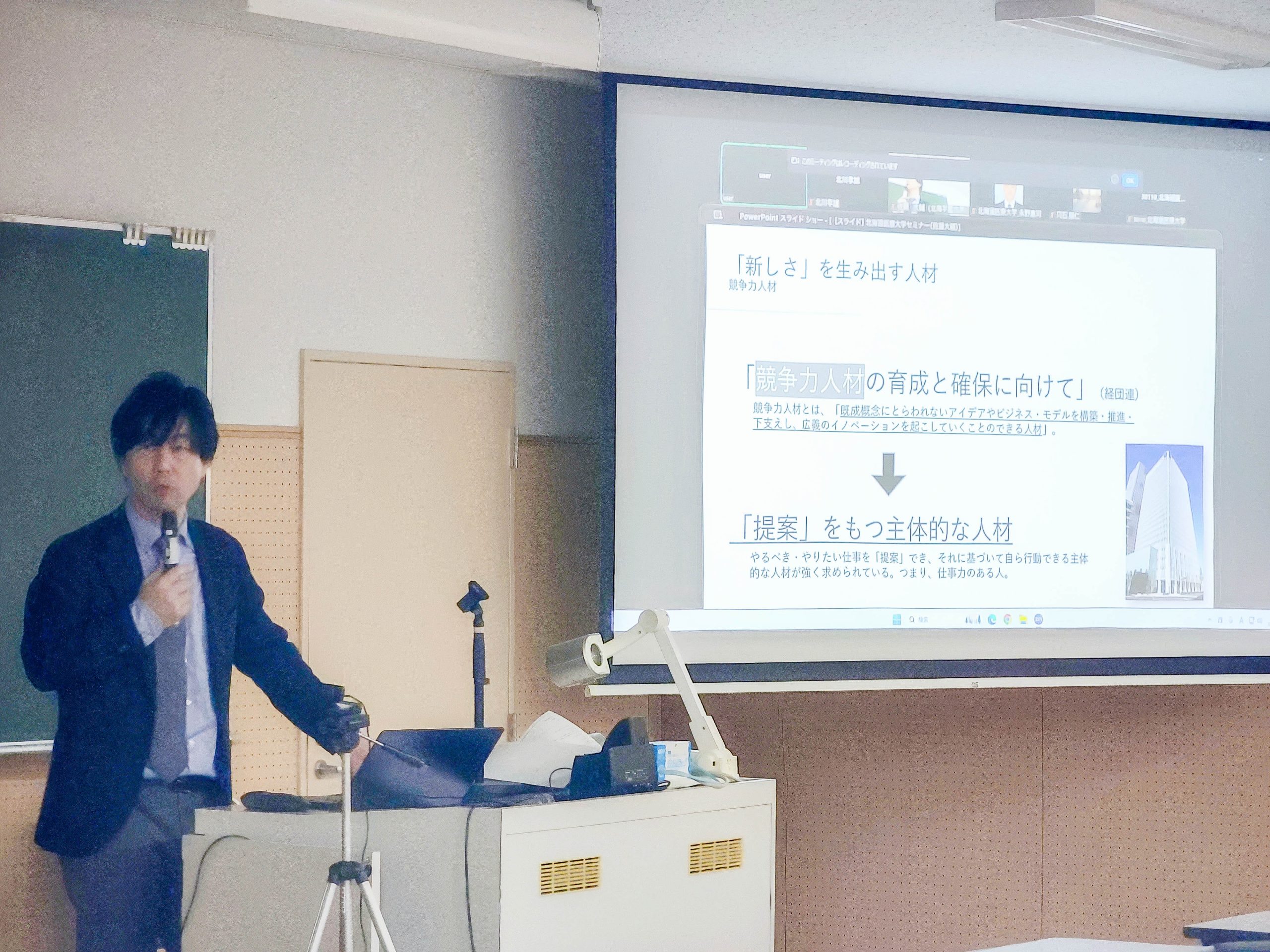 講演では、時代が求める創造性や主体性を備えた人材育成の重要性について解説があり、北海学園大学における具体的な取り組みとして、「スタートアップ支援室」や「学内販売拠点Mets」などの実践例が紹介されました。