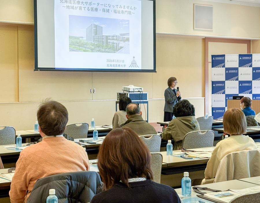 2026年3月31日(火)、北広島市芸術文化ホールにおいて、「北海道医療大サポーターズ説明会」を開催しました。当日は、地域の皆さま57名にご参加いただきました。