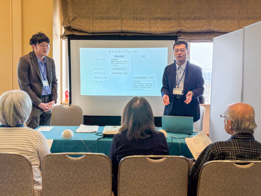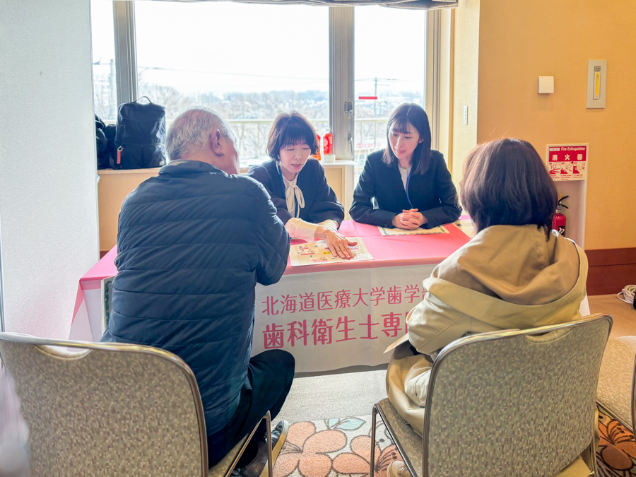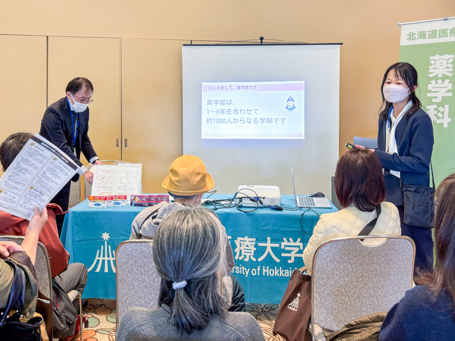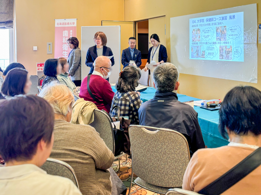 後半では、薬学部・歯学部・看護学科・心理科学部・リハビリテーション科学部・歯科衛生士専門学校をはじめとする各学部の特色や、授業・実習において地域の皆さまにご協力いただく場面について紹介しました。参加者の皆さまは熱心に耳を傾け、説明後には多くの質問や相談が寄せられるなど、活発な意見交換の場となりました。