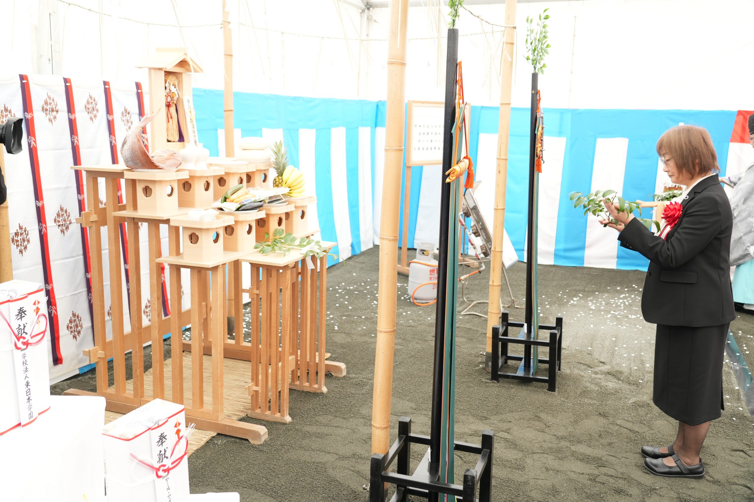 当日は、廣島神社の齋主のもと、学校法人東日本学園ならびに設計・施工関係者が参列し、厳粛に式典が執り行われました。