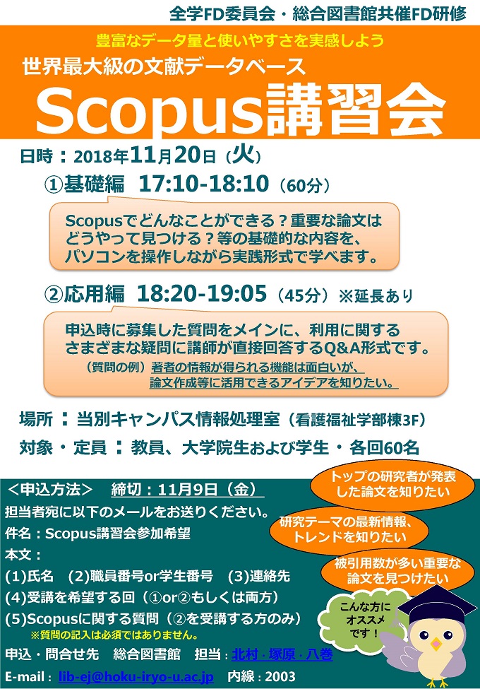 【開催案内】11/20(火)全学FD委員会・総合図書館共催FD研修「Scopus講習会」を開催します。