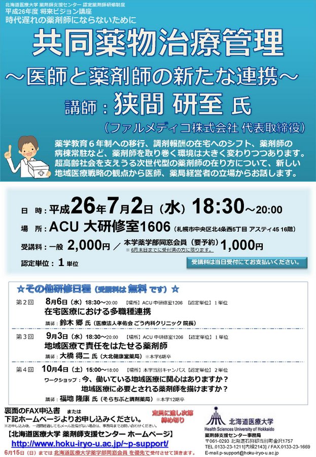 薬剤師支援センター「第1回 将来ビジョン講座」の開催について