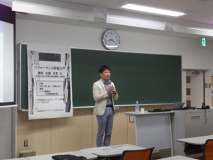 平成28年8月19日(金)に、平成28年度第2回リハビリテーション科学部FD研修会を開催しました。大阪大学より佐藤浩章先生をお招きし、「パフォーマンス評価入門」をテーマとした研修会でした。